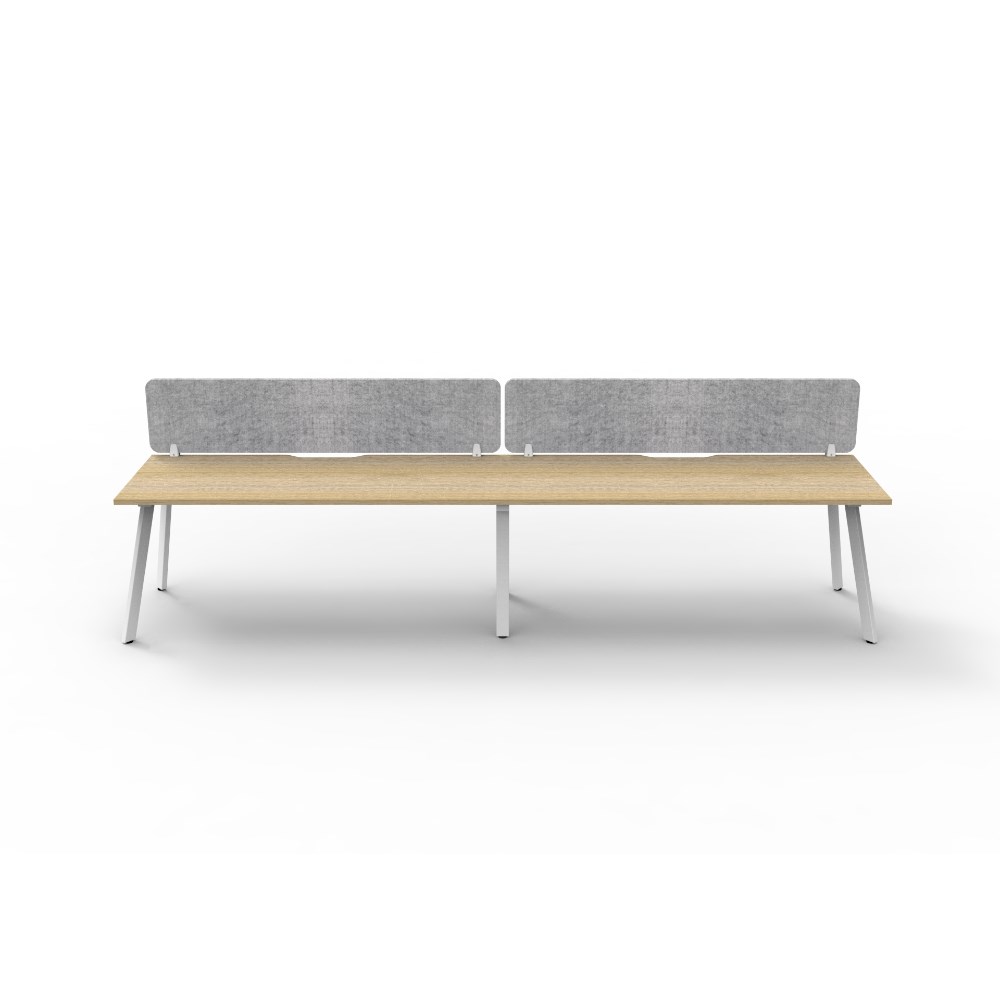 2 person single sided workstation with Natural Oak top and White Satin frame, Grey Eco screen.