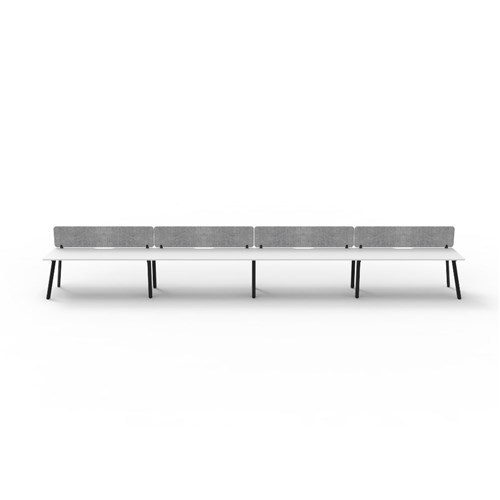 4 person single sided workstation with Natural White top and Black Satin frame, Grey Eco screen.