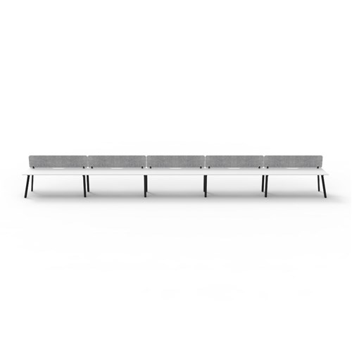 5 person single sided workstation with Natural White top and Black Satin frame, Grey Eco screen.