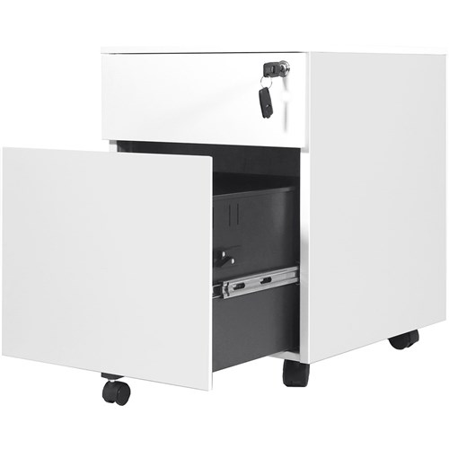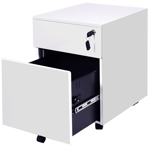 Rapidline Go Steel Mobile Pedestal 1 Drawer 1 File 390W x 472D x 527mmH White
