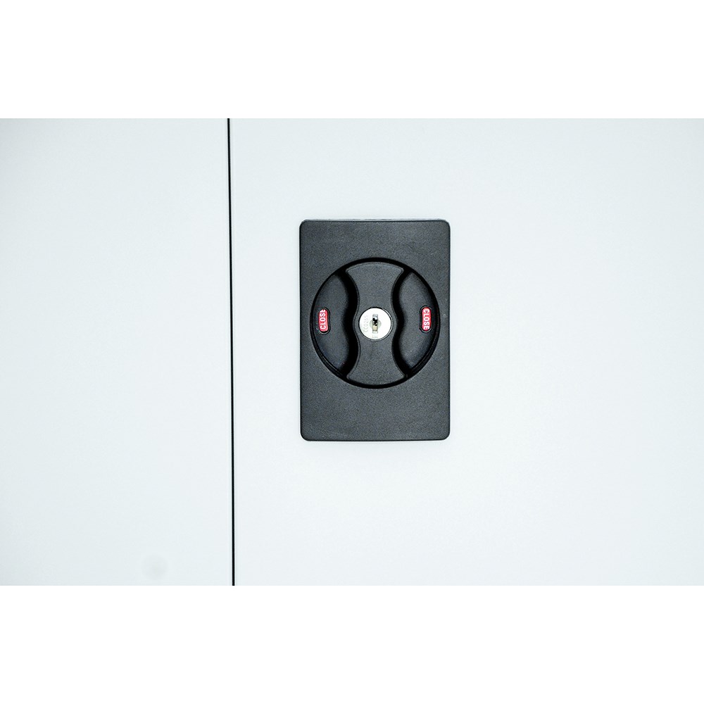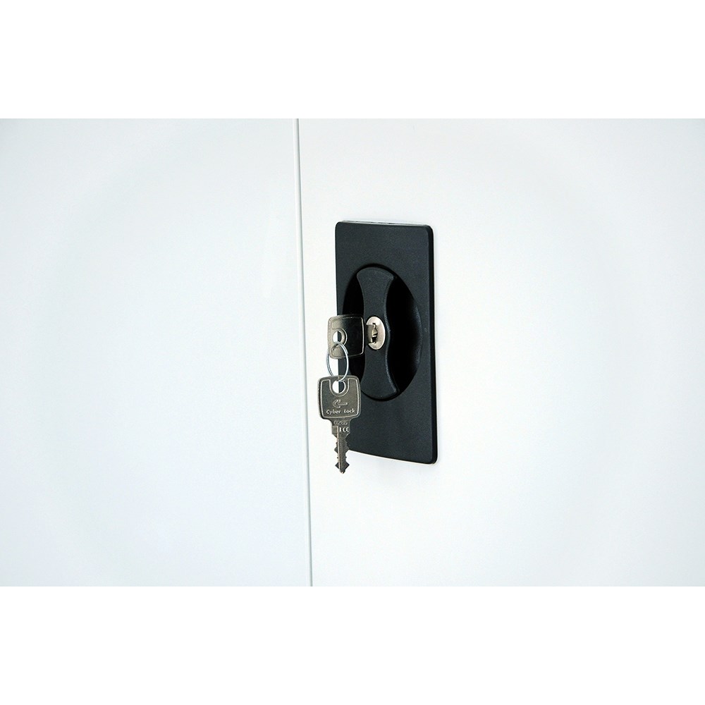 GO swing door cupboards have a flush lock and adjustable shelves.