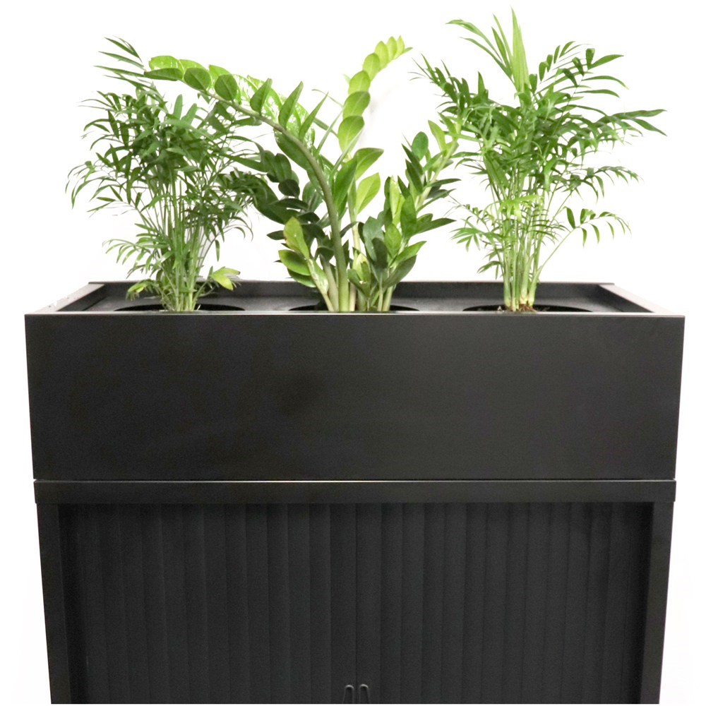 Go Planter box will sit on top of a 1200mmW Tambour door cupboard or Lateral Filing cabinet.
