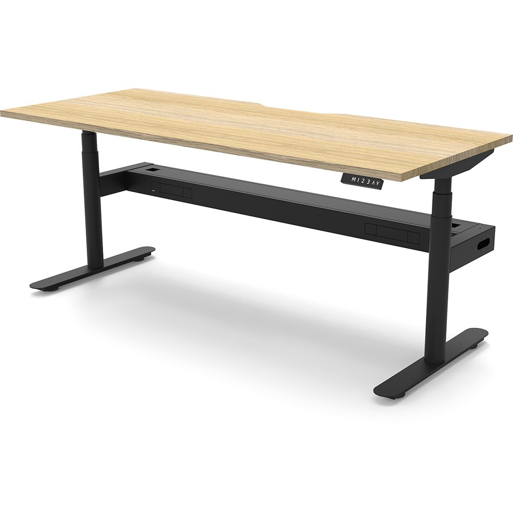70mm diameter round column legs. 700mm wide foot size with adjustable leveling feet, return foot: 700mm. Comes with cable tray for cable management.