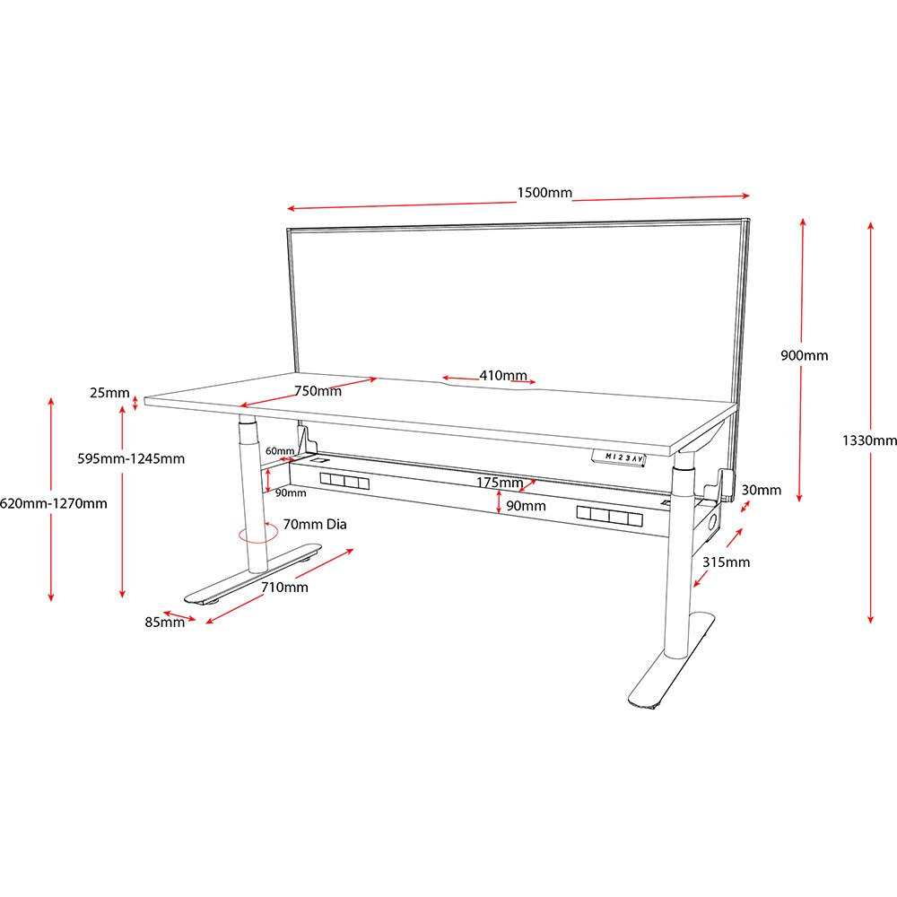 Unit Dimension: 1500mm W x 750mm D x 620-1270mm H.