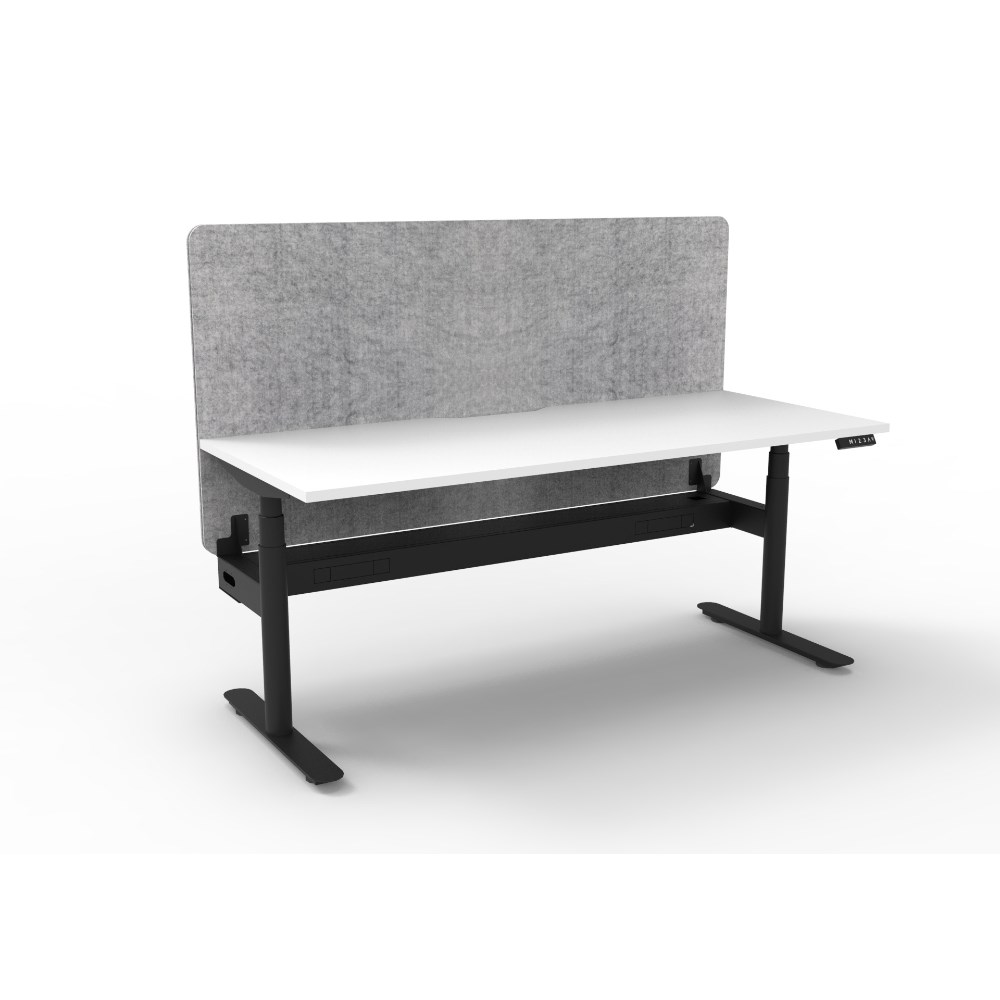 Rapidline Halo+ Single Sided Workstation + Black Eco Screen +Tray 1200Wx620-1270mmH Wht/Wh