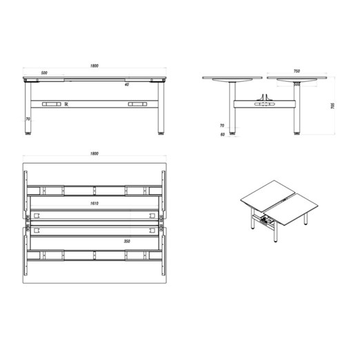 Per User Dimensions: 1800W x 750D x 730mmH.