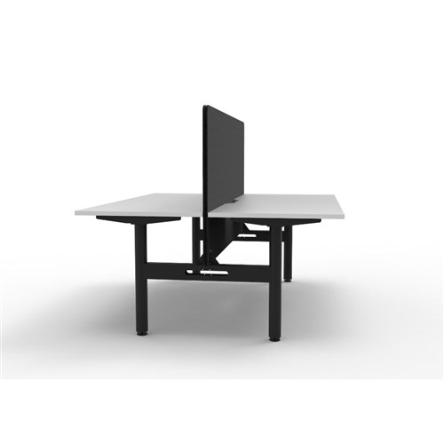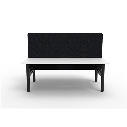 2 person back to back workstation with White top and Black Satin frame, Black Eco screen.