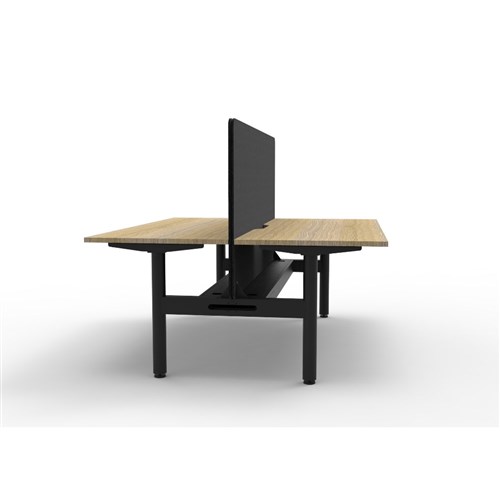 2 person back to back workstation with Natural Oak top and Black Satin frame, Black Eco screen and cable tray.