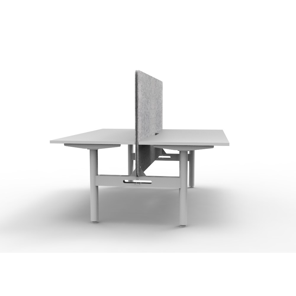 2 person back to back workstation with White top and White Satin frame, Grey Eco screen.