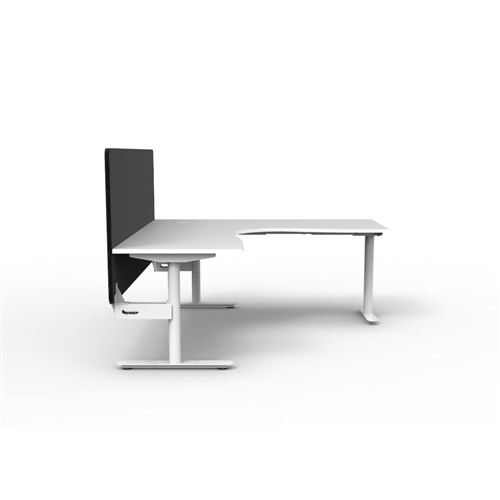 Corner workstation with White top and White Satin frame, Black Eco screen.