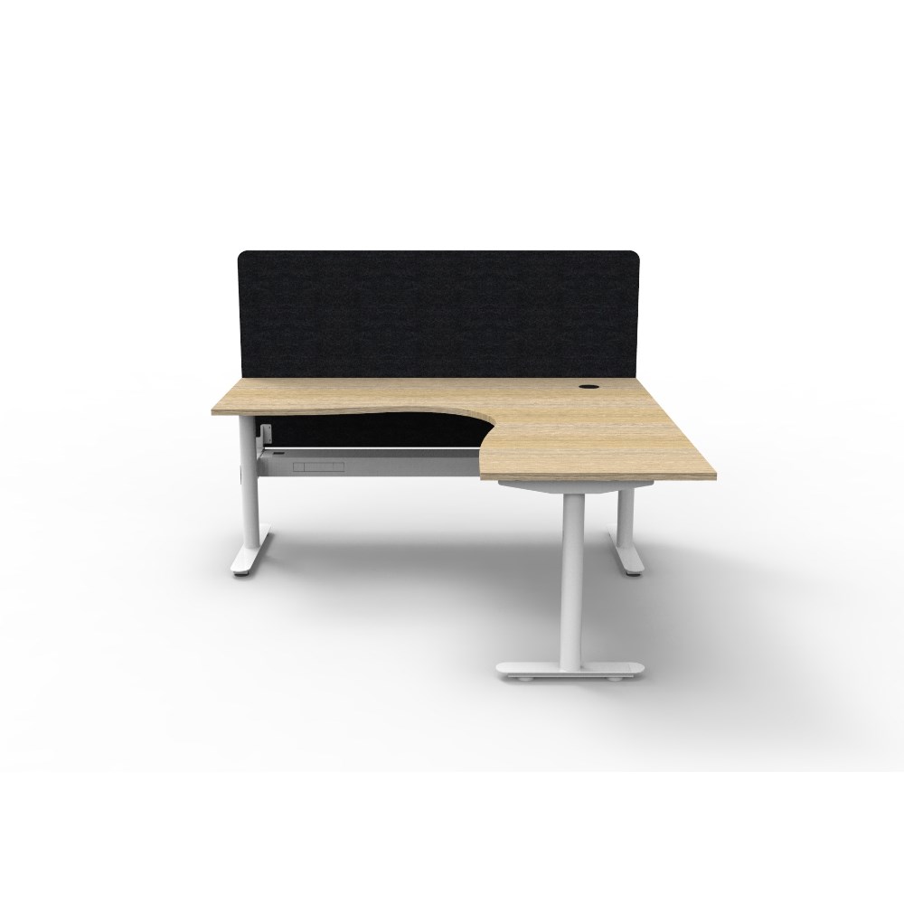 Rapidline Halo Static Corner Workstation Black Eco Screen + Tray 1800/1800W x 730mmH Oak/W