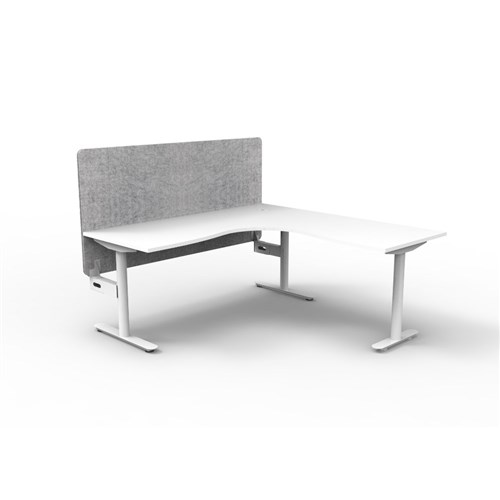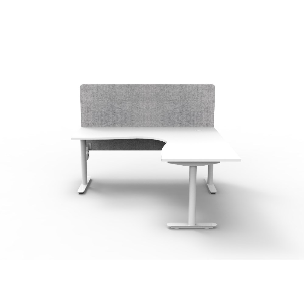 Corner workstation with White top and White Satin frame, Grey Eco screen.
