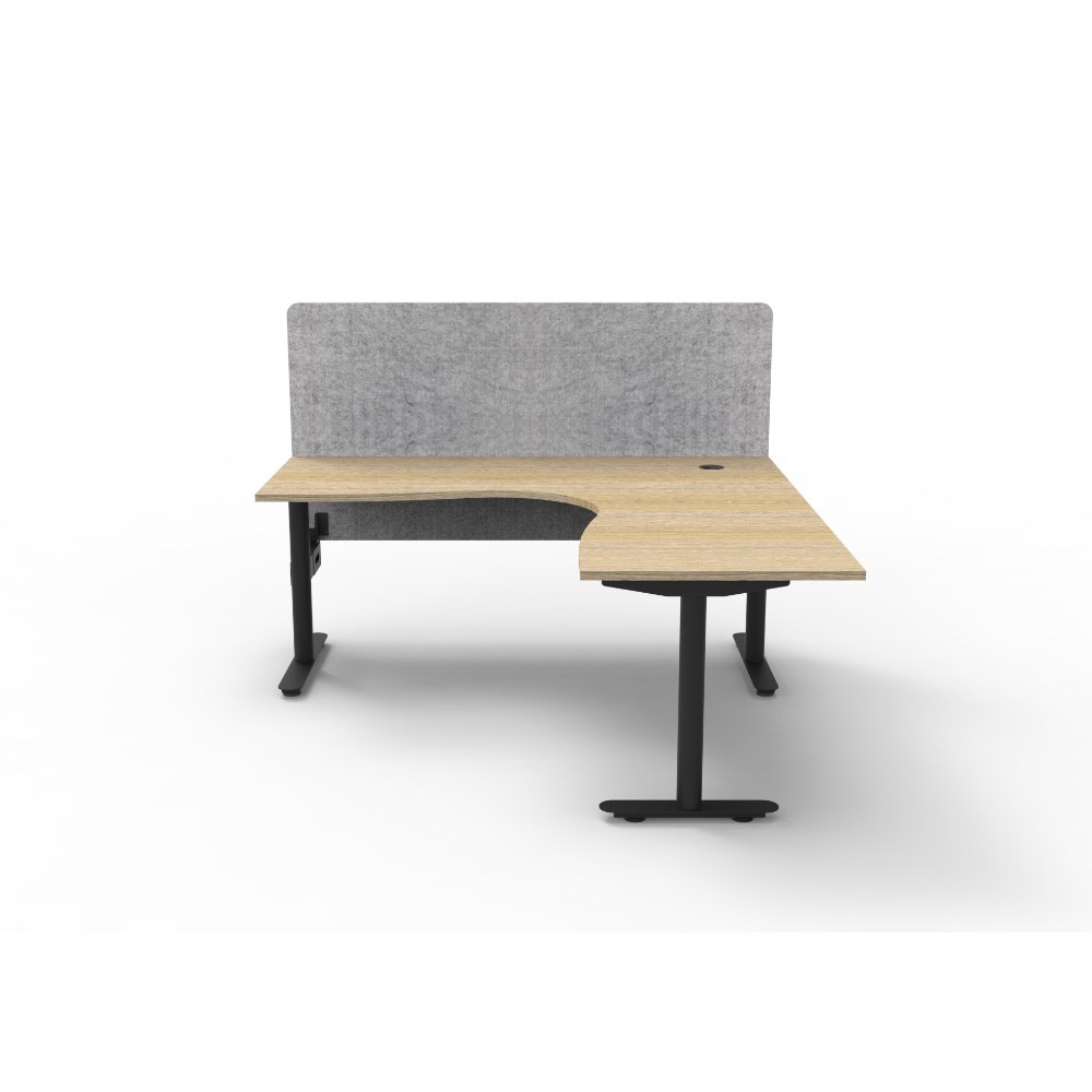 Corner workstation with Natural Oak top and Black Satin frame, Grey Eco screen.