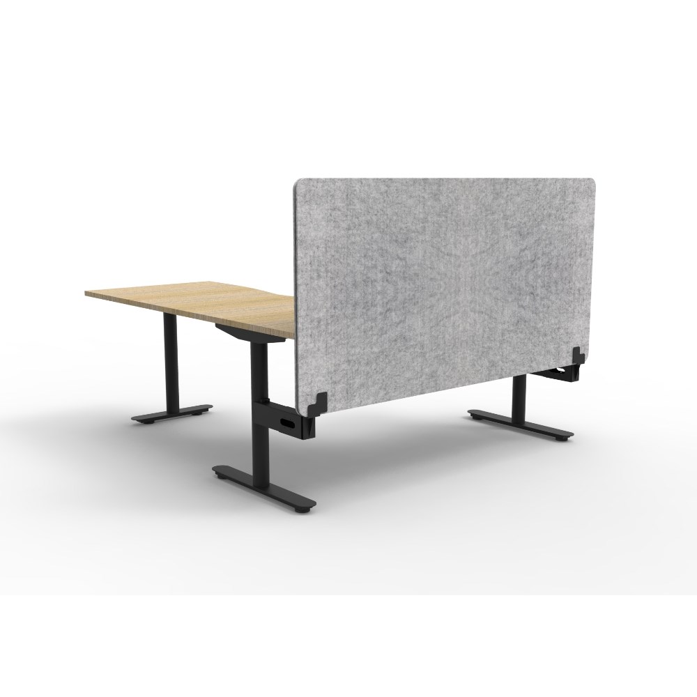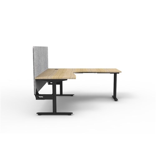 Corner workstation with Natural Oak top and Black Satin frame, Grey Eco screen.