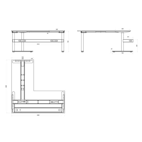 Desk Dimensions: 1800W x 1800W x 750D x 730mmH. Height With Screen: 1330mm.