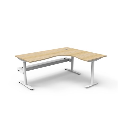 Natural Oak top White Satin frame. Corner workstation with cable tray.