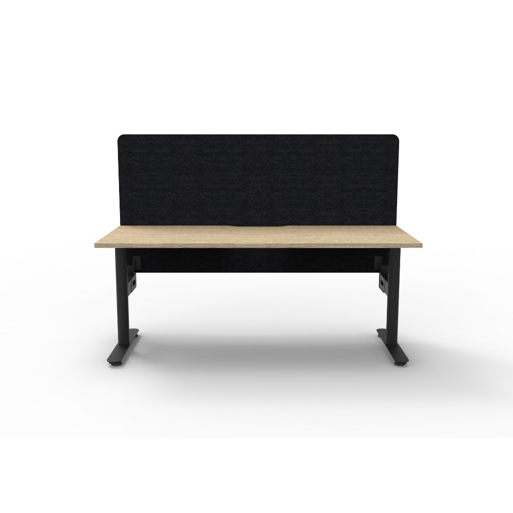 Single sided workstation with Natural Oak top and Black Satin frame, Black Eco screen.