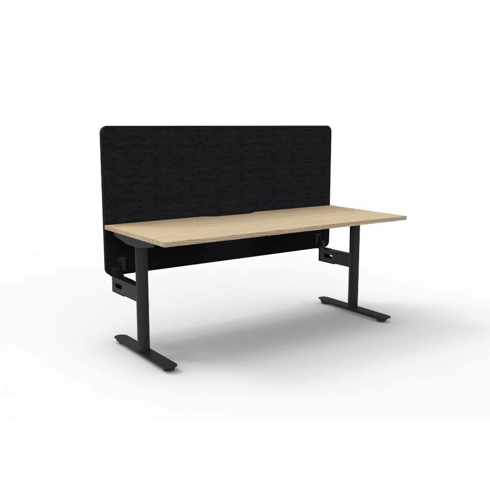 Single sided workstation with Natural Oak top and Black Satin frame, Black Eco screen.