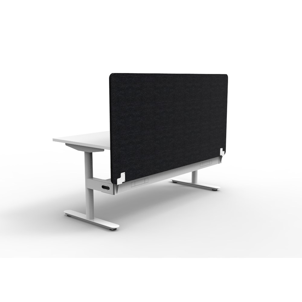 Single sided workstation with White top and White Satin frame, Black Eco screen and cable tray.