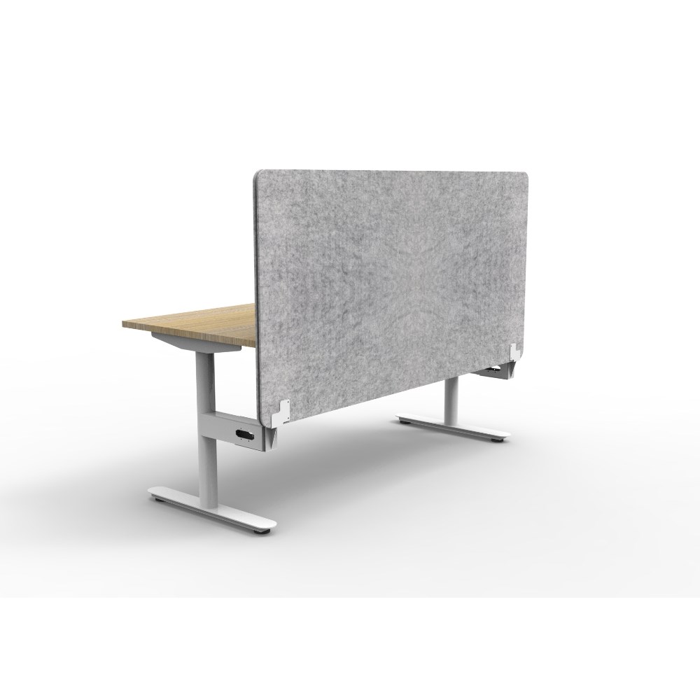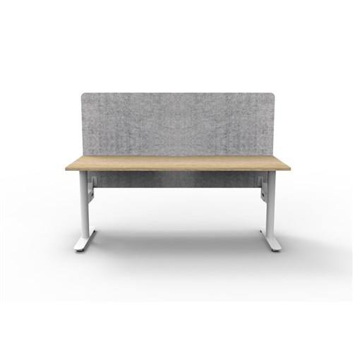 Single sided workstation with Natural Oak top and White Satin frame, Grey Eco screen.