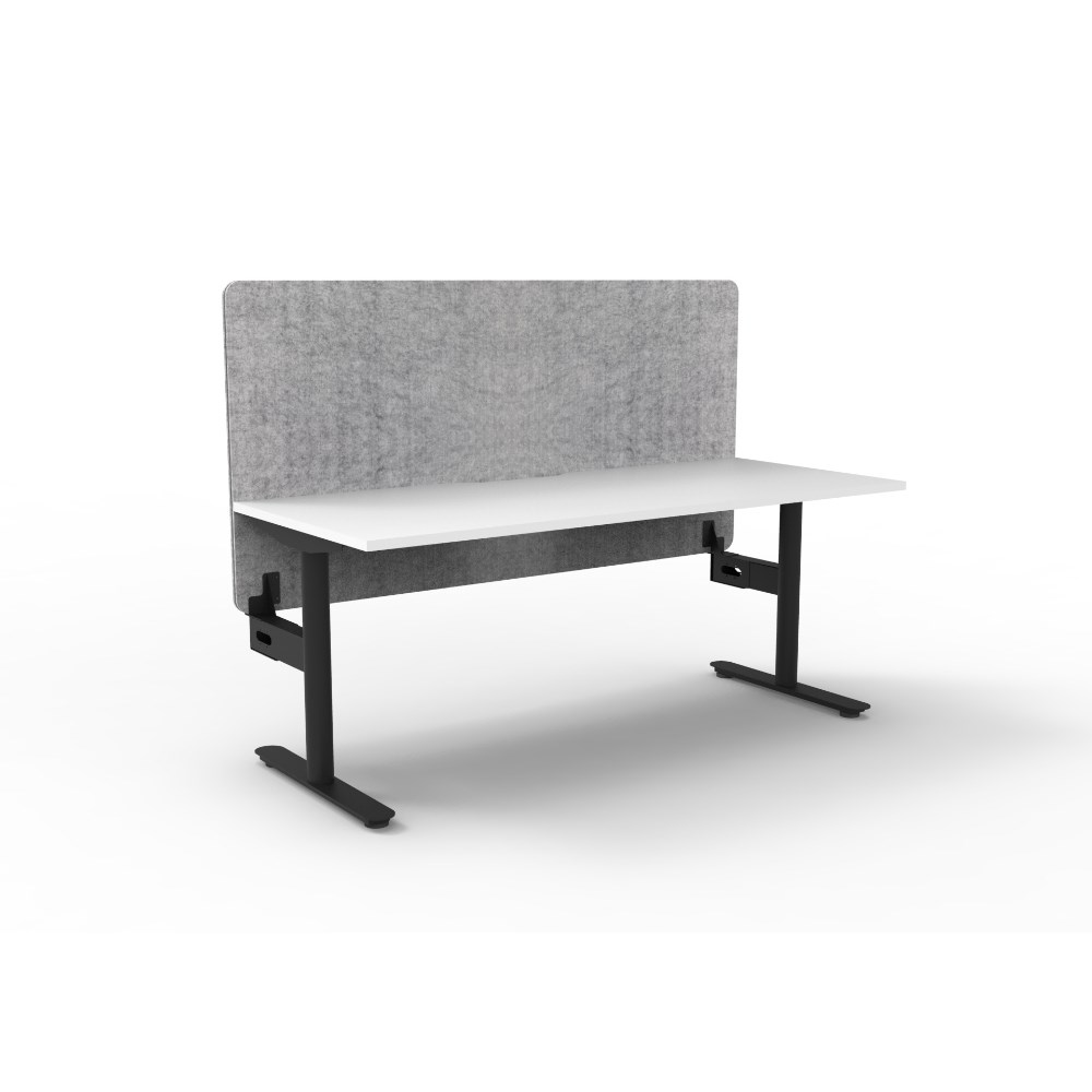 Single sided workstation with White top and Black Satin frame, Grey Eco screen.