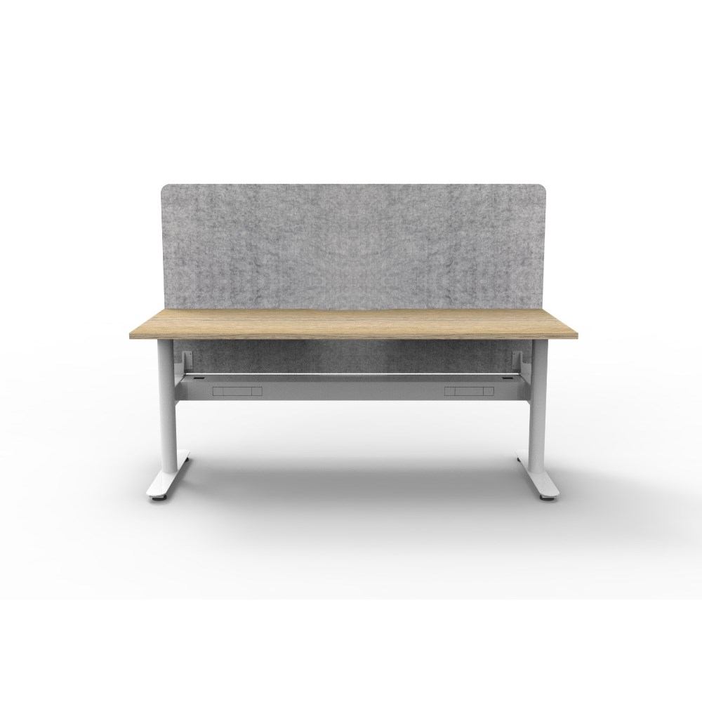 Single sided workstation with Natural Oak top and White Satin frame, Grey Eco screen and cable tray.