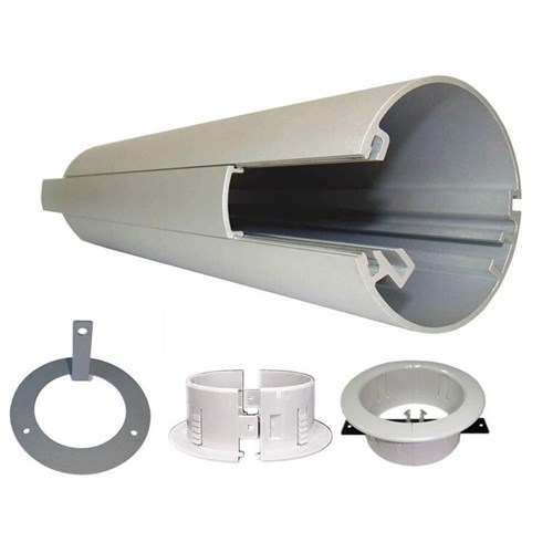 Includes: Desk to Ceiling Pole, Ceiling Cover Plate, Under Desk Mounting Bracket, Desk Grommet and Cover.