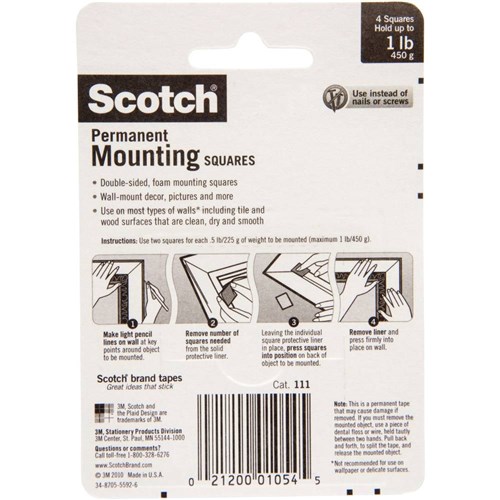 Scotch 111P Mounting Tape 2.5cmx2.5cm Indoor Squares Pack of 16