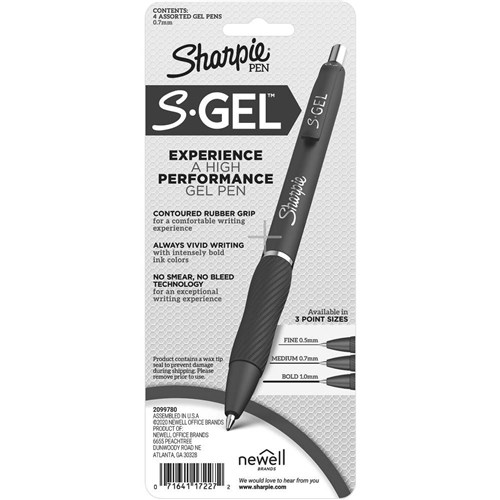 Sharpie Gel Pen Retractable 0.7mm Business Assorted Pack of 4
