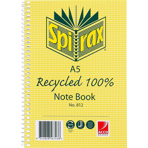 Spirax 812 Recycled 100% Notebook A5 Ruled 120 Pages Side Opening
