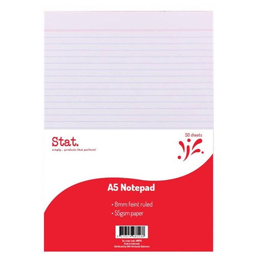 Stat Notepad A5 8mm Ruled 55Gsm White 50 Sheet