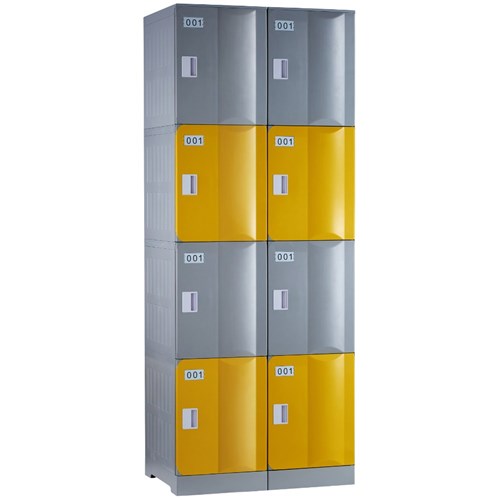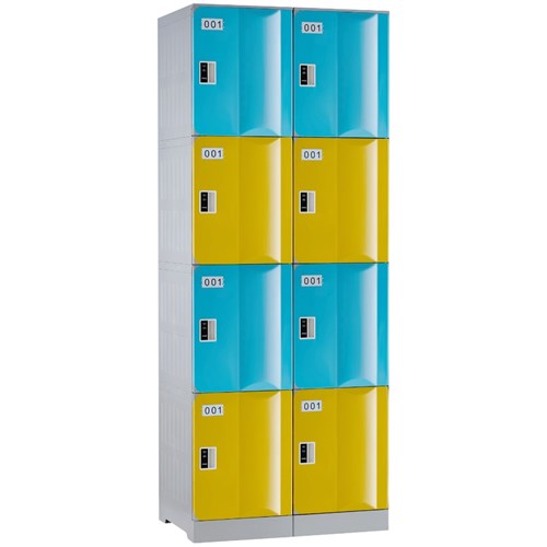 Steelco ABS Plastic Locker 4 Door Bank Of 2 760W x 500D x 1940mmH Assorted Colours