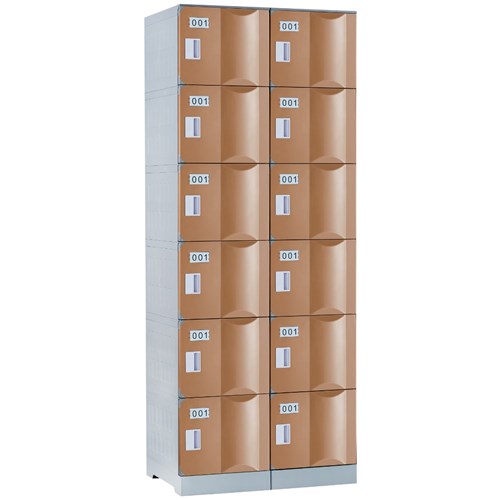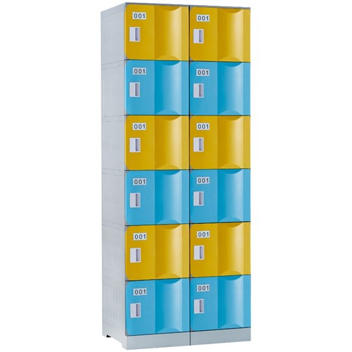 Steelco ABS Plastic Locker 6 Door Bank Of 2 760W x 500D x 1940mmH Assorted Colours
