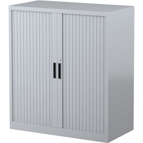 Steelco Tambour Door Cupboard Includes 2 Shelves 900W x 463D x 1015mmH Silver Grey