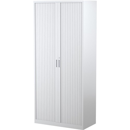 Steelco Tambour Door Cupboard Includes 5 Shelves 900W x 463D x 2000mmH White Satin