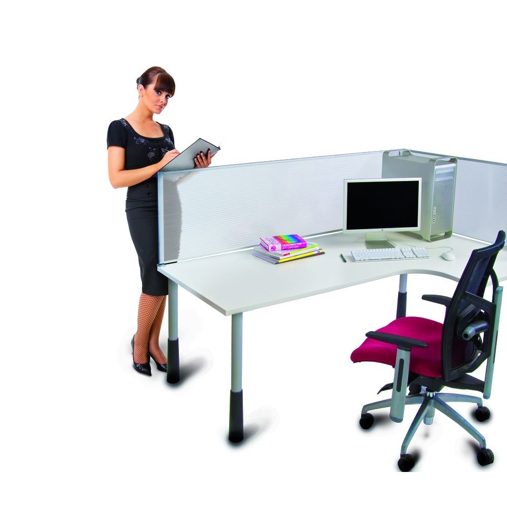 Quickly mount to any desk (mounts sold separately) to provide a translucent screen between workers, while still maintaining personal contact.