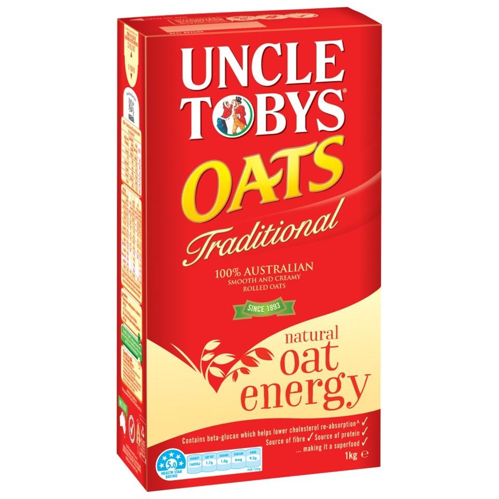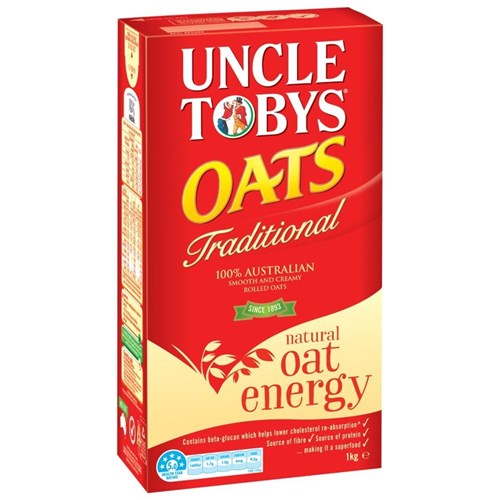 Uncle Tobys Oats Traditional 1KG 100% Wholegrain Oats 102826