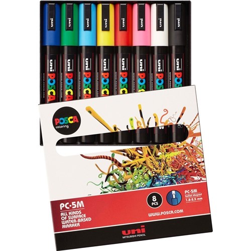 Uni Posca PC-5M Paint Marker Medium 2.5mm Bullet Tip Assorted Colours Wallet Of 8