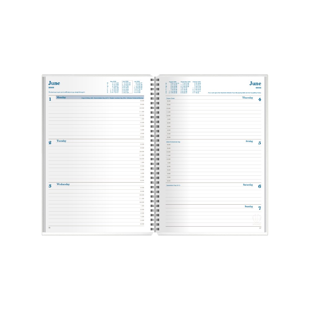 The week to opening format allows scheduling of family events and appointments at a glance.