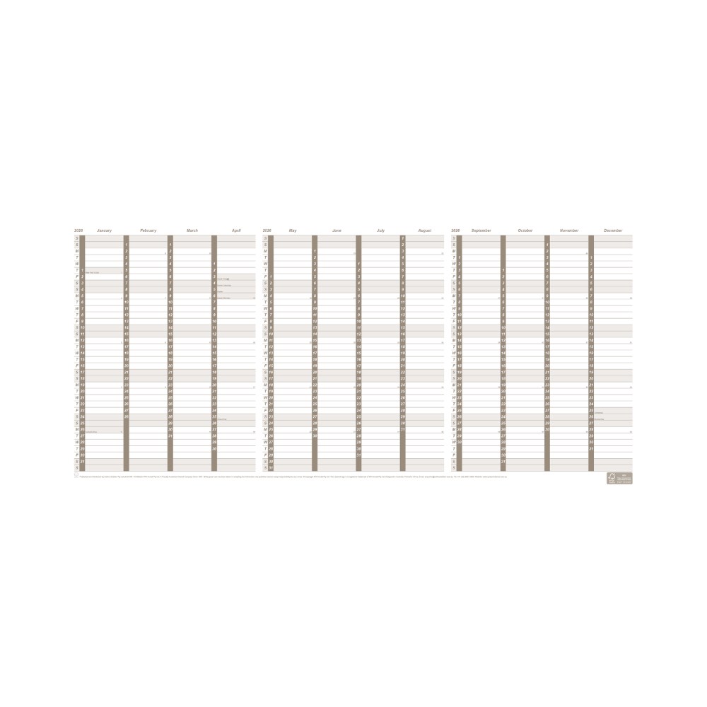 Upward Dated Year Wall Planner Reversible 2 Years 557 x 297mm Brown