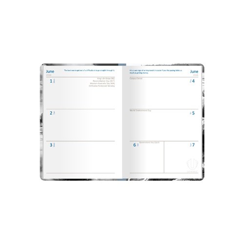The week to view layout provides a convenient overview of your week, while the section sewn binding ensures your diary will stay in perfect condition.