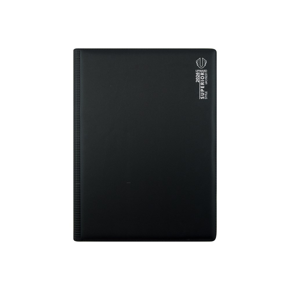 Featuring a padded, phthalate free, PVC cover, pockets for storing business cards and wire-o binding to allow the diary to lie completely flat when open.