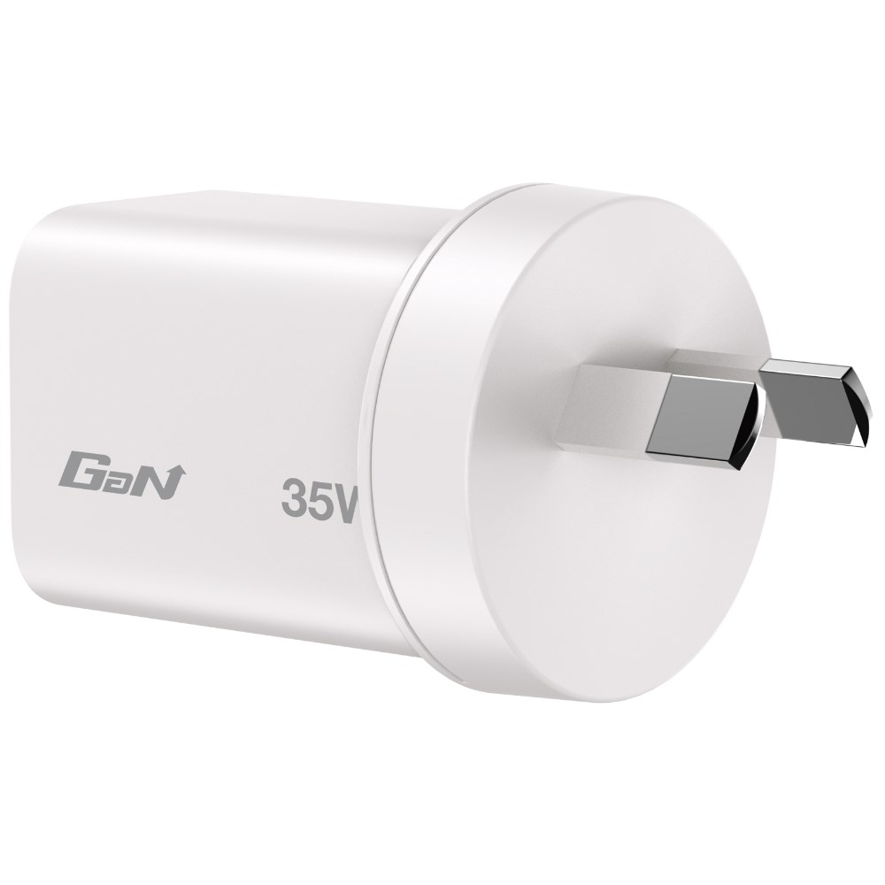 Consolidates multiple chargers into one, combining one USB-C PD 35W port, one USB-A QC 3.0 port in a sleek, palm sized design.