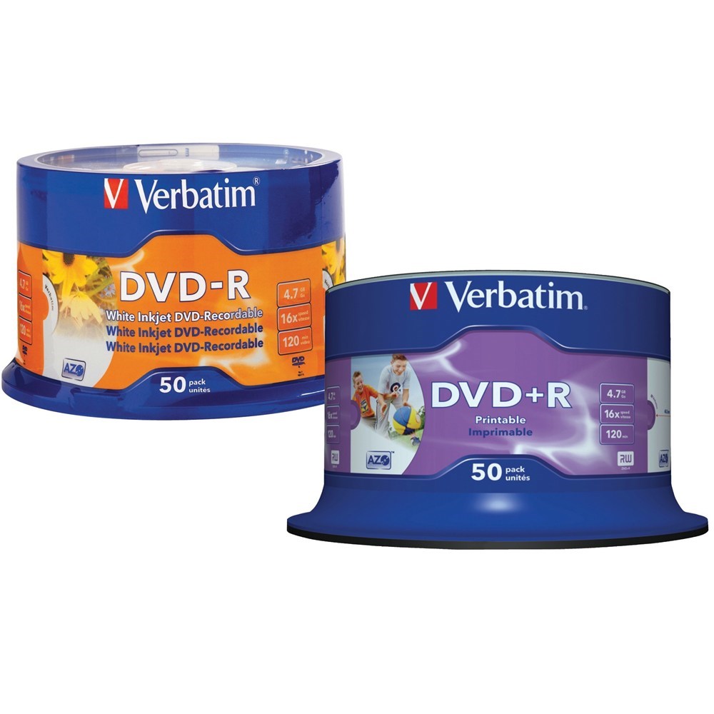 Verbatim Recordable DVD-R 120Min 4.7GB 16X Inkjet Printable Pack Of 50 White