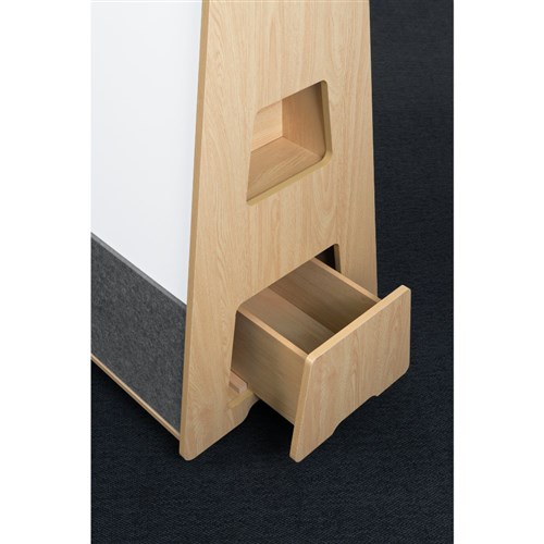 Offering two large writing surfaces and a magnetic receptive acoustic pinboard base.