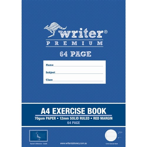 Writer Premium Exercise Books feature heavy duty covers, high quality white 70gsm paper.