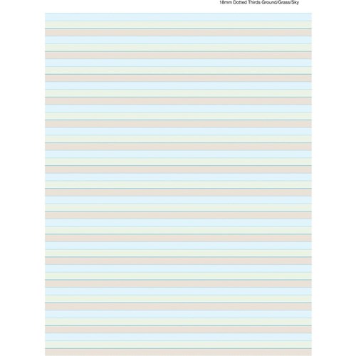 Brown (ground), green (grass), blue (sky) printed lines for learning to write.