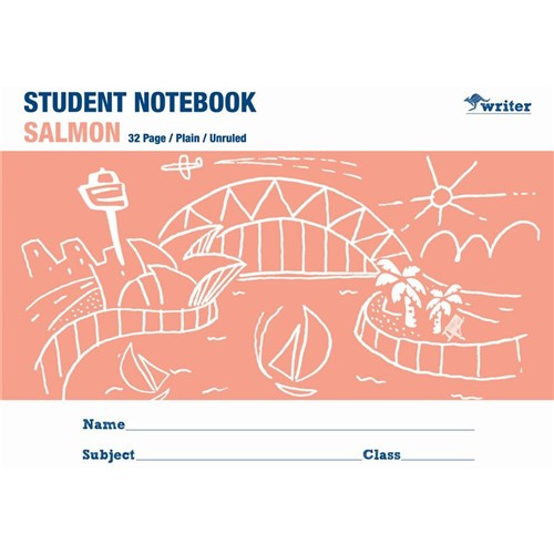 Writer Student Notebook 175 x 245mm Plain 32 Pages Salmon