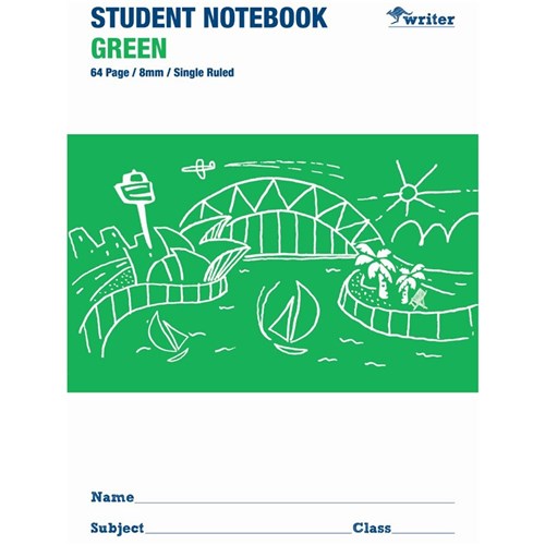 Writer Student Notebook 175x250mm 8mm Single Ruled 64 Pages Green