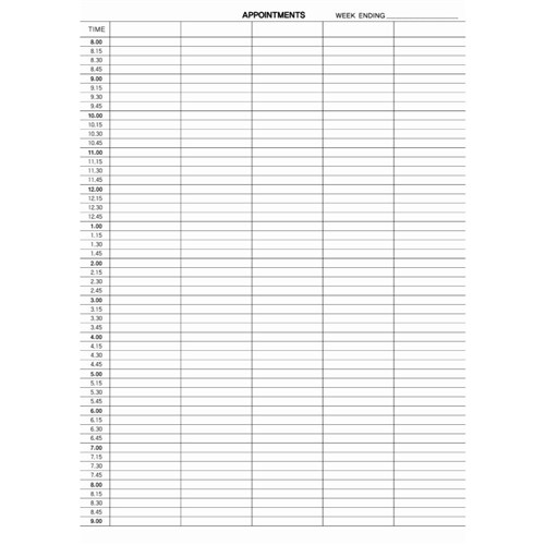 Zions 1412 Appointment Book A4 1/4Hr 8am to 9pm 192 Page
